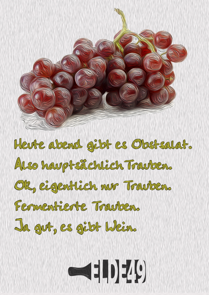 Heute abend gibt es Obstsalat. Also hauptsächlich Trauben. OK, eigentlich nur Trauben. Fermentierte Trauben. Ja gut, es gibt Wein.