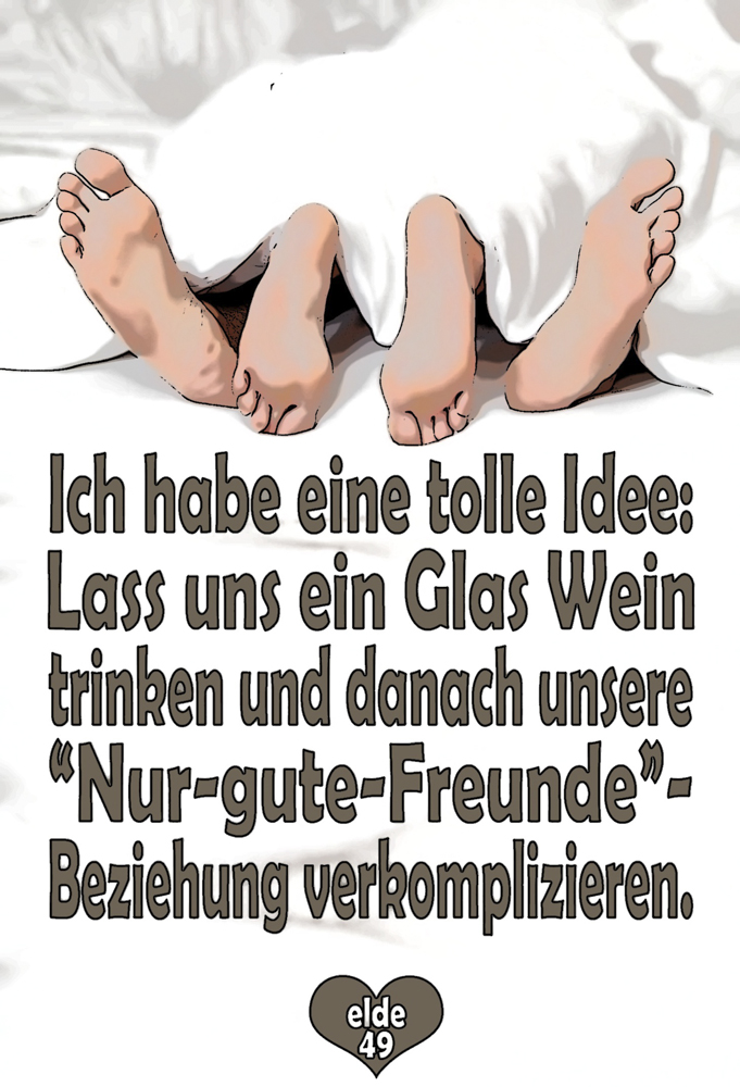Ich habe eine tolle Idee: Lass uns ein Glas Wein trinken und danach unsere „Nur-gute-Freunde“-Beziehung verkomplizieren.