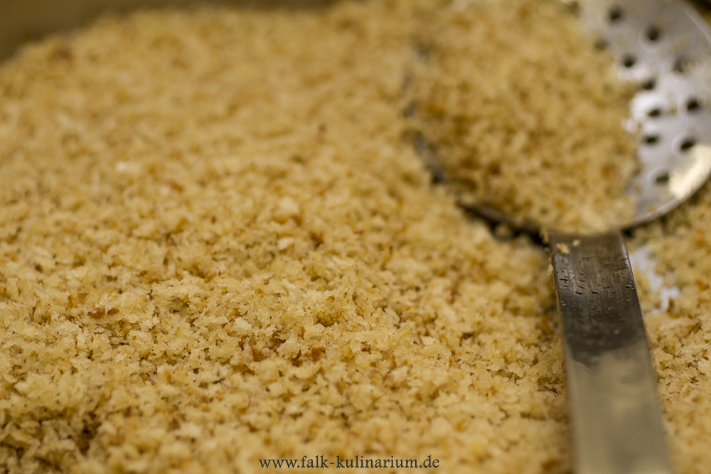 […] 4 Scheiben Toast entrinden, in Würfel schneiden und diese grob zwischen den Fingern zermahlen. Das Toast flach ausbreiten und im Dehydrator bei 60°C über Nacht 12 h lang trocknen. Am nächsten Morgen noch einmal mit den Fingern die groben Stücke zerdrücken und fertig ist das selbstgemachte Pankomehl. Ohne den direkten Vergleich eine tolle, schnelle und kostengünstige Alternative. Den Unterschied zwischen Pankomehl, Semmelbrösel, Paniermehl und Mie de pain könnt ihr in unserem Küchenlatein nachlesen. […]
